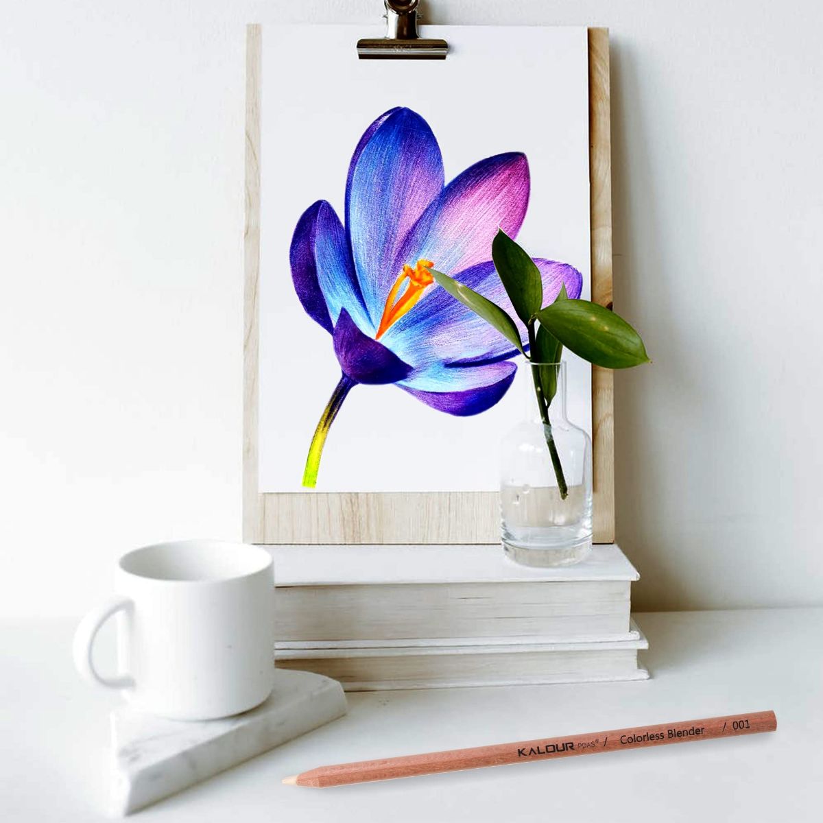 مداد بلندر کالور، مدادی نرم و بدون رنگ است که به شما اجازه میدهد دو یا چند رنگ مختلف را بهراحتی و بهصورت یکنواخت با هم ترکیب کنید. این مداد باعث میشود تا لبههای رنگها نرمتر و ملایمتر به نظر برسند و رنگها به شکلی طبیعیتر با هم ادغام شوند. این ویژگی باعث میشود که آثار هنری شما جلوهای حرفهایتر و چشمنوازتر پیدا کند